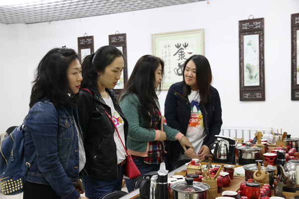 旅游幼师韩语专业群专业长于庆霞老师向客人们讲解茶艺工作室