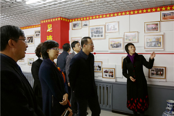 申秀梅副院长(右一)为来访领导介绍学校发展历程