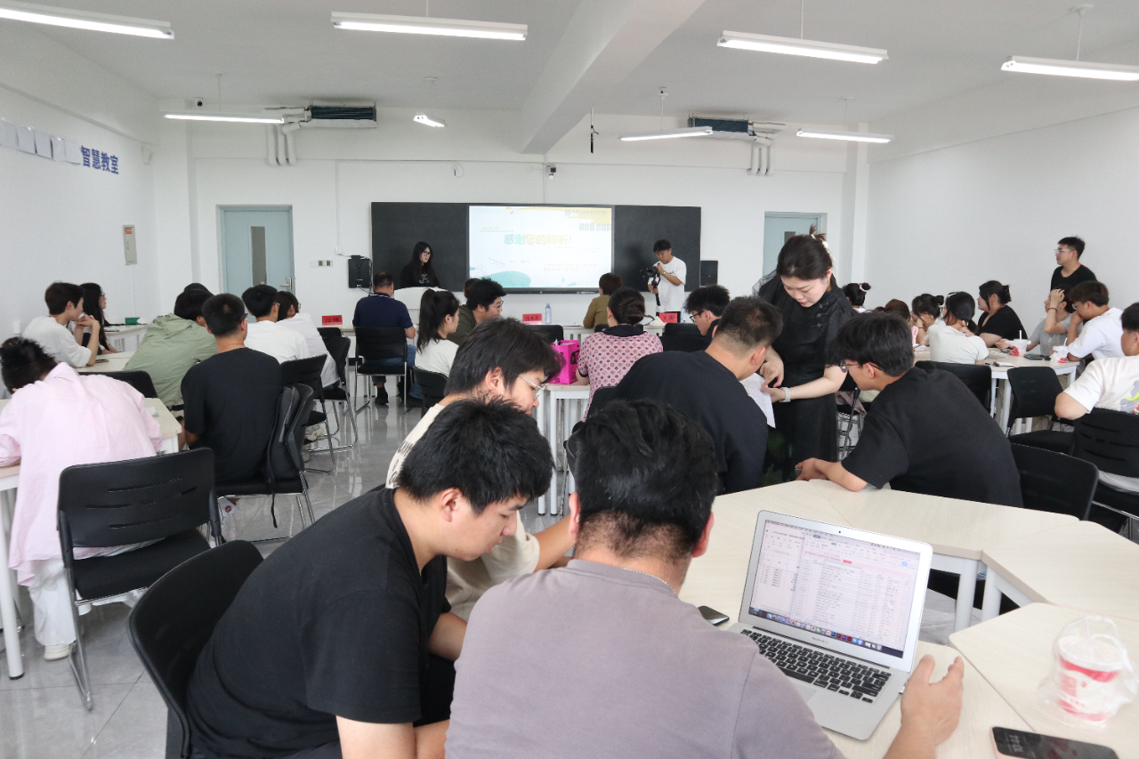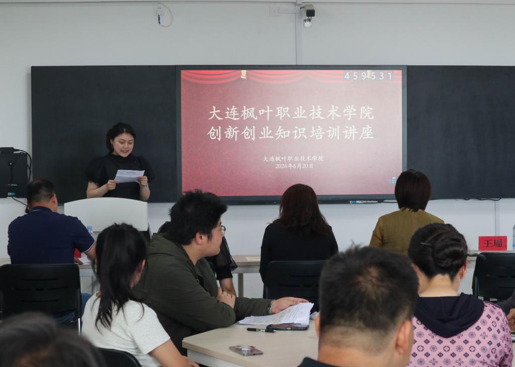 大连枫叶职业技术学院院长助理张冬冬、创业就业办主任高红印、经济管理与服务系教学副主任蔡丽丽,各系部就业干事、创新大赛项目指导老师、项目团队成员等共计60余人参加此次培训。培训会由就业服务科科长杨柳主持。