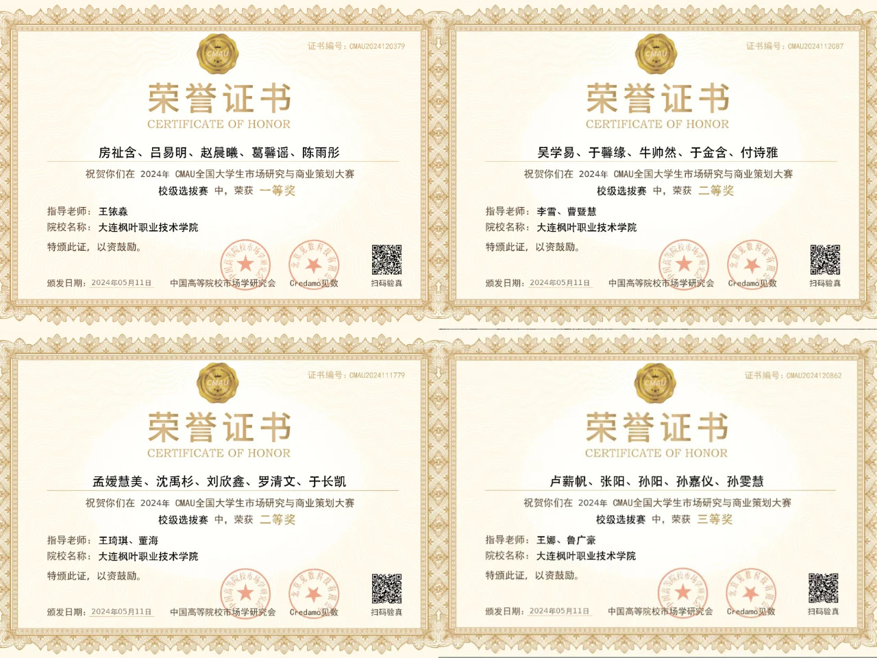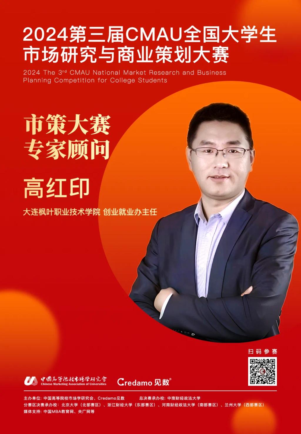 自2024年1月起,大连枫叶职业技术学院积极组织参与第三届全国大学生市场研究和商业策划大赛,大赛组委会特聘请我院创业就业办主任高红印任此次竞赛专家评委。