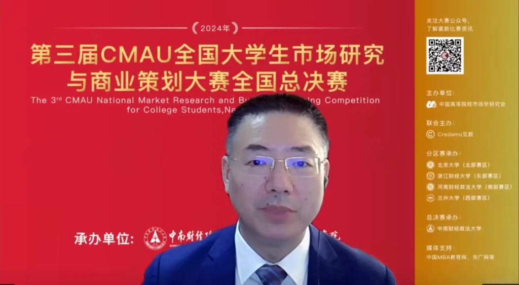 为激发广大高校学子参与市场研究与商业策划的热情,促进国内优秀学科人才进行思想交流,2024年6月16日,第三届CMAU全国大学生市场研究与商业策划大赛总决赛于中南财经政法大学工商管理学院成功举办。本次大赛是由中国高等院校市场学研究会与Credamo见数联合主办的专业性公益赛事,于2024年1月11日发布通知,3月13日在中南财经政法大学举办启动仪式,先后经过了公益培训、专业知识认证、校级选拔赛、分赛区竞赛等阶段,此次为全国总决赛的最后答辩环节。一共分成三个阶段:开幕式、线上选手答辩、闭幕式。各校领导老师和企业高管作为嘉宾评委莅临现场,以及来自全国各地67支学生团队参与线上答辩,共同为这项具有实践意义的高校竞赛画上圆满句号。
