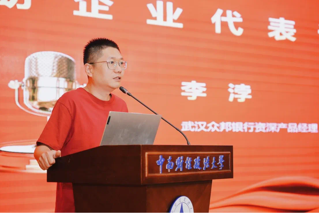 Credamo见数创始人、大赛执行委员会副主任、中央财经大学商学院姚凯副教授武汉众邦银行资深产品经理李浡先生代表赞助企业代表发言,以幽默风趣的故事引出众邦银行的背景介绍,解答大家对它的疑惑,也说明了目前众邦银行面临的痛点,表示参赛选手的策划书立意新颖、内容详实,为众邦银行的团队成员带来诸多启发,借用了“帮助企业解决真问题,真解决问题”进行感谢结尾。