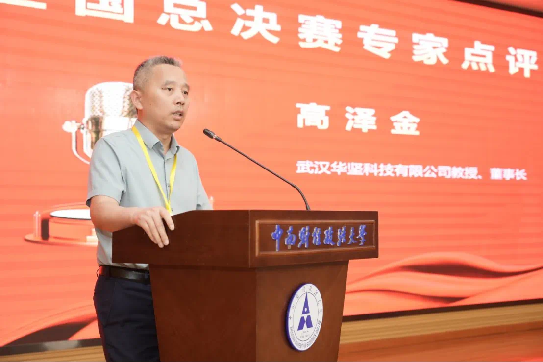 武汉市中科智大创业创新管理服务有限公司总经理左浩先生武汉华坚科技有限公司教授、董事长高泽金先生感谢所有参与者的辛苦付出,他认为大赛搭建起了产教融合的平台,参赛同学都从中受益匪浅,但同学们仍需将选题细化、可视化。他还提出赛事可以增加实战环节,希望从市场营销衍生到各行各业融入实干元素,回归教育本质。