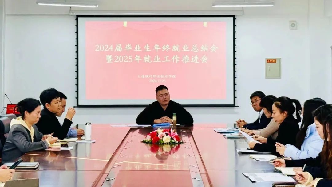 12月23日下午,大连枫叶职业技术学院召开2024届毕业生年终就业总结会暨2025年就业工作推进会,旨在贯彻落实全省大学生就业工作推进会精神,全面部署学院2025年毕业生就业工作。学院副院长高成林出席会议并发表讲话,各院系就业工作负责人以及创业就业办工作人员参加了此次会议。