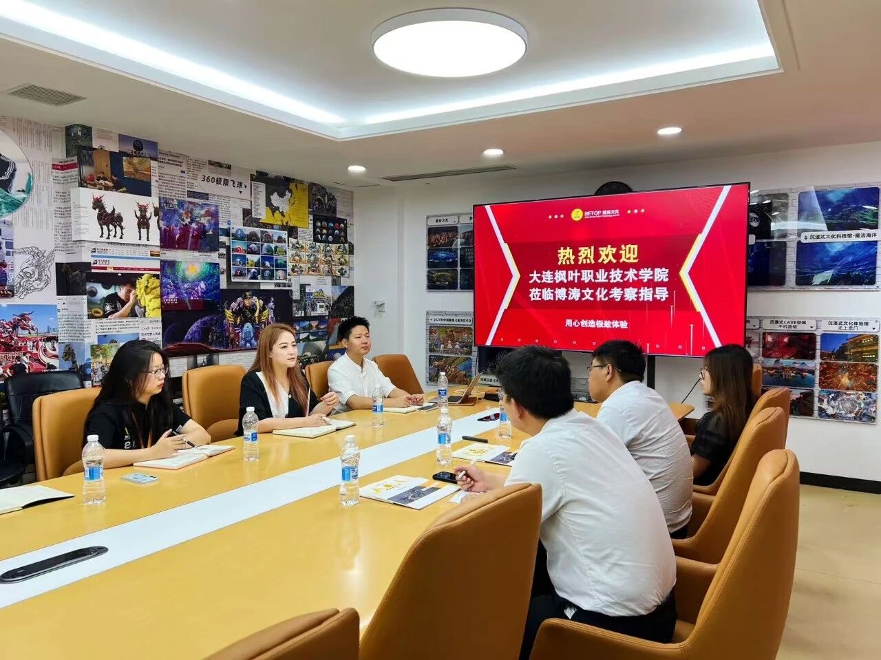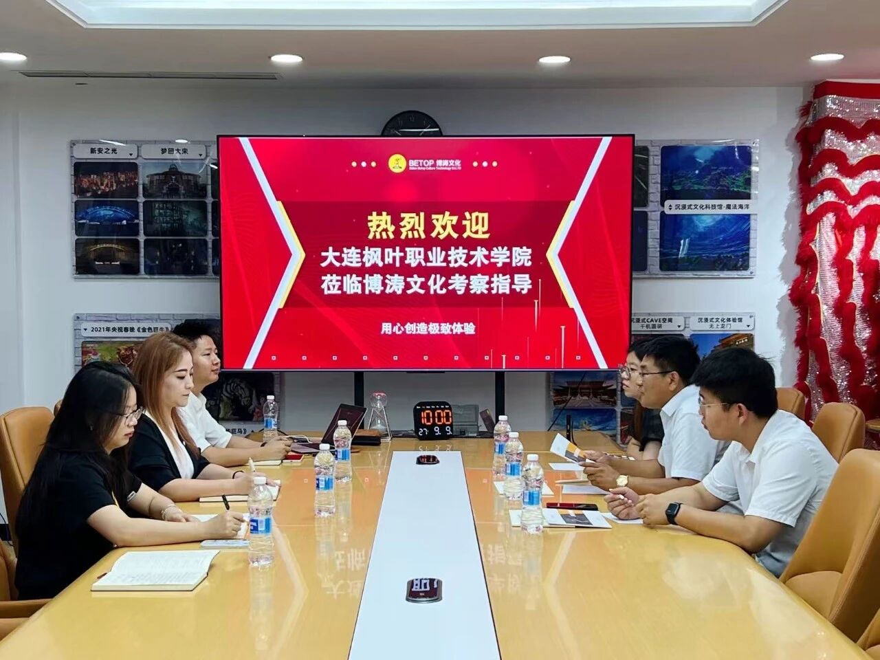 参观结束后,双方就校企合作事宜进行了座谈交流。高红印介绍了大连枫叶职业技术学院的专业设置、人才培养模式以及近年来在就业工作方面取得的成绩。他表示,学院一直致力于为学生提供优质的教育资源和广阔的就业平台,希望通过与博涛文化这样的行业领军企业开展深度合作,建立长期稳定的校企合作关系,共同探索订单班人才培养模式,为企业输送更多高素质、应用型专业人才,实现学校、企业、学生三方共赢。