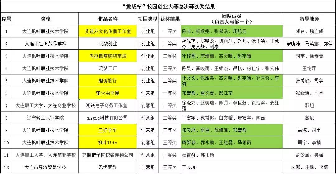 (黄色为助理团学生获奖项目,绿色为获奖项目团队成员)
