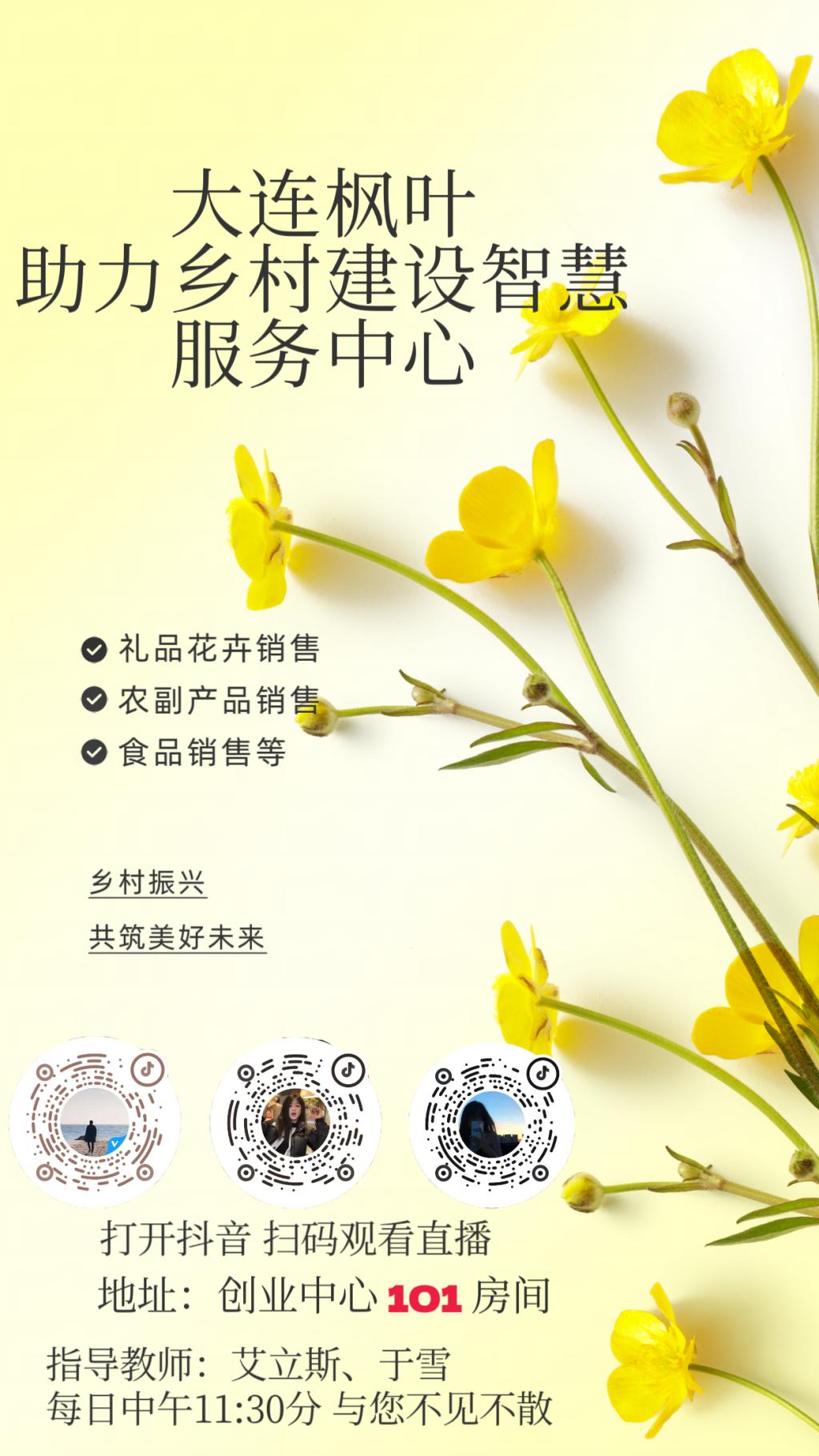 “大连枫叶助力乡村建设智慧服务中心”始终坚持以“乡村振兴,共筑美好未来”为核心。经营范围涵盖农副产品销售、食品销售、礼品花卉销售、日用百货销售、互联网销售等。