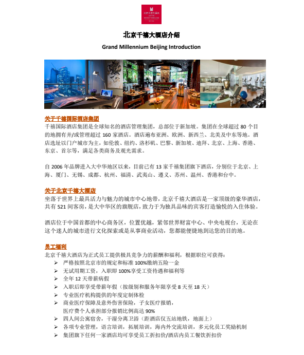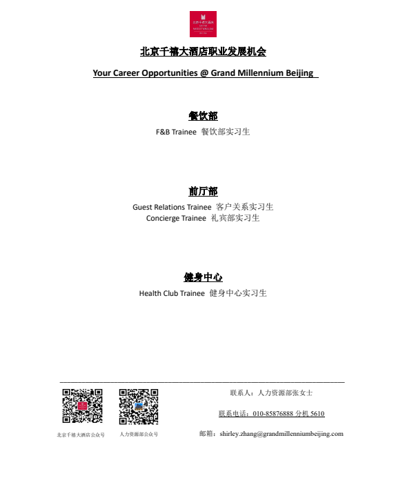 招聘信息|北京千禧大酒店