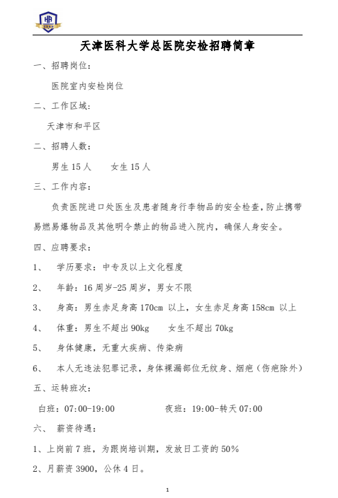 招聘信息|天津医科大学总医院安检