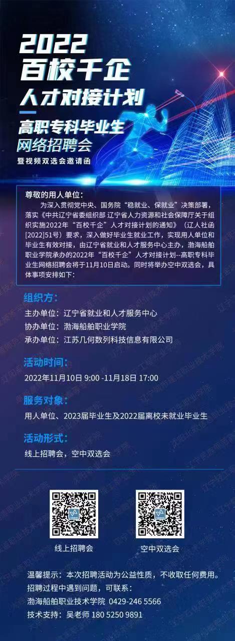 招聘会|2022百校千企人才对接计划—高职专科毕业生网络招聘会