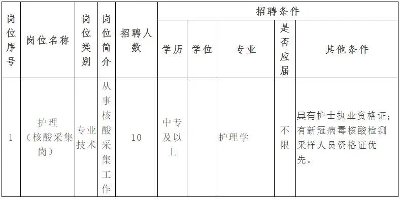目前新冠疫情防控形势严峻,受区委区政府委托,我院紧急招聘护理岗位(核酸采集)人员,现将有关事项通知如下: