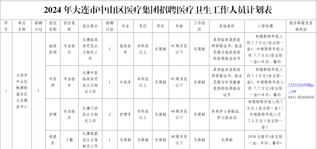 2024年大连市中山区医疗集团招聘医疗卫生工作人员计划表