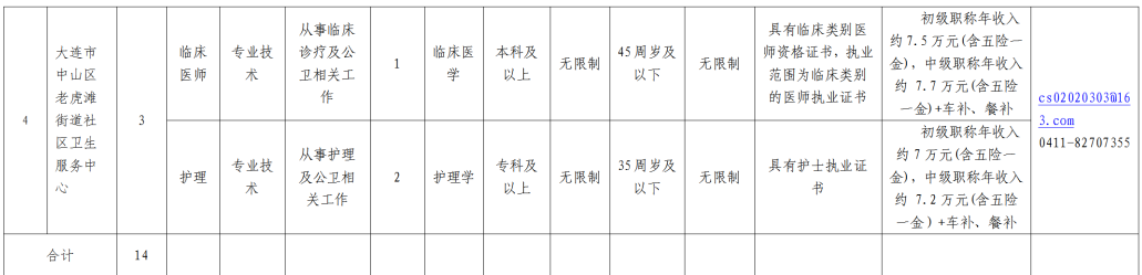 为提升中山区医疗集团医疗卫生服务能力,加大我区基本公共卫生服务力度,中山区医疗集团拟面向社会公开招聘非事业编制医疗卫生工作人员14名,补充到各公办社区卫生服务中心。现将有关事宜公告如下。
