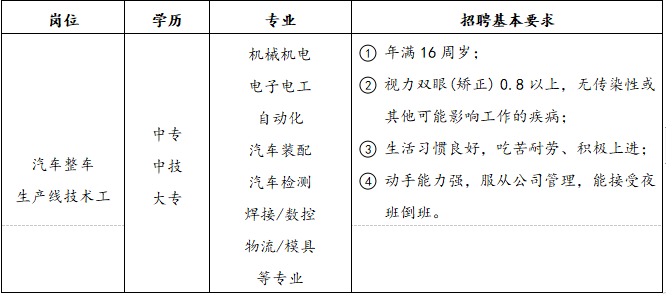 地址:固定招聘地点;泰州市高港区临港工业园长城汽车泰州分公司南行300米路西。