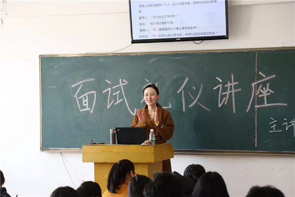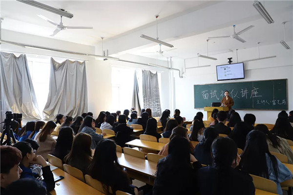 为更好地应对当前严峻的就业形势,做好毕业生就业工作,提升学生的礼仪形象,创业就业办于4月3日在我校财经商贸系6楼多媒体教室举行《直通职场,职面未来——面试礼仪》专场讲座活动。本次讲座的主讲由教育部认证中国礼仪训练讲师、中国校园礼仪培训师富乙芮老师担任,来自全院各专业的70余名同学聆听了本次讲座。