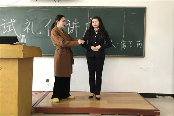 讲座伊始,富老师先强调了面试前应进行简历、自我介绍及了解企业文化三方面的准备。通过幽默的语言、生动的例子大大激发了同学们的兴趣。稍后从专业的角度结合中西方的礼仪,详细地讲解面试礼仪,从国际礼仪中最基础的微笑开始,讲到面试中的目光、站姿、坐姿等等,讲授期间富老师以身示范,并与同学互动,请同学进行演示,让同学们亲身体验到礼仪的规范带给大家的良好感觉。