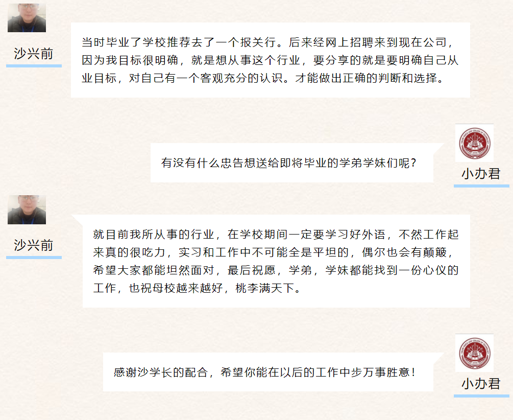 毕业多年,如今大家都在各个岗位发光发热,为社会、为家庭做出自己贡献,承担社会责任,老师为你们感到自豪。希望大家,在今后的工作、生活中继续努力,为社会做出更大贡献,学校定会以你为荣,祝福大家!