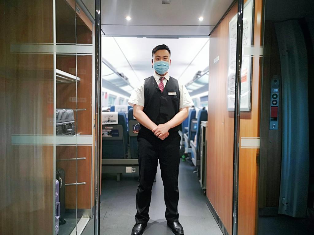 我是来自19高铁2班的柏紫泉,现在在济南铁路局乘务三队实习,是一名高铁餐吧乘务员。