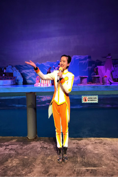 在圣亚过五关斩六将,成功面试成为一名圣亚主持人之后,我就拥有了一个坚定的目标:尽我最大的热情与努力,让每一场表演的观众在看过演出后,都能开开心心的离场,在圣亚不留遗憾。这是我最初的初衷,也是我一直以来所坚持的信念。